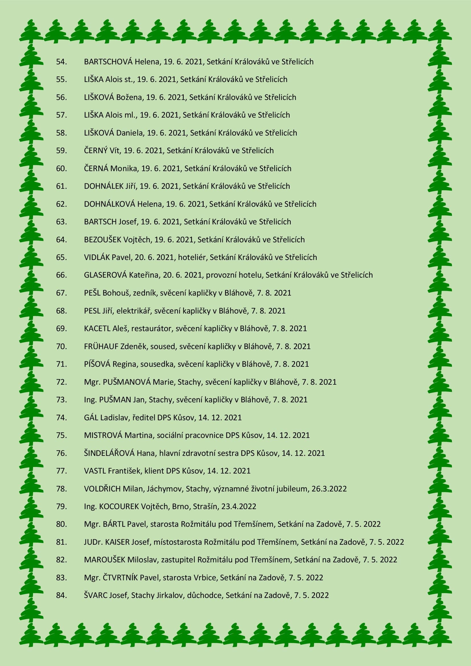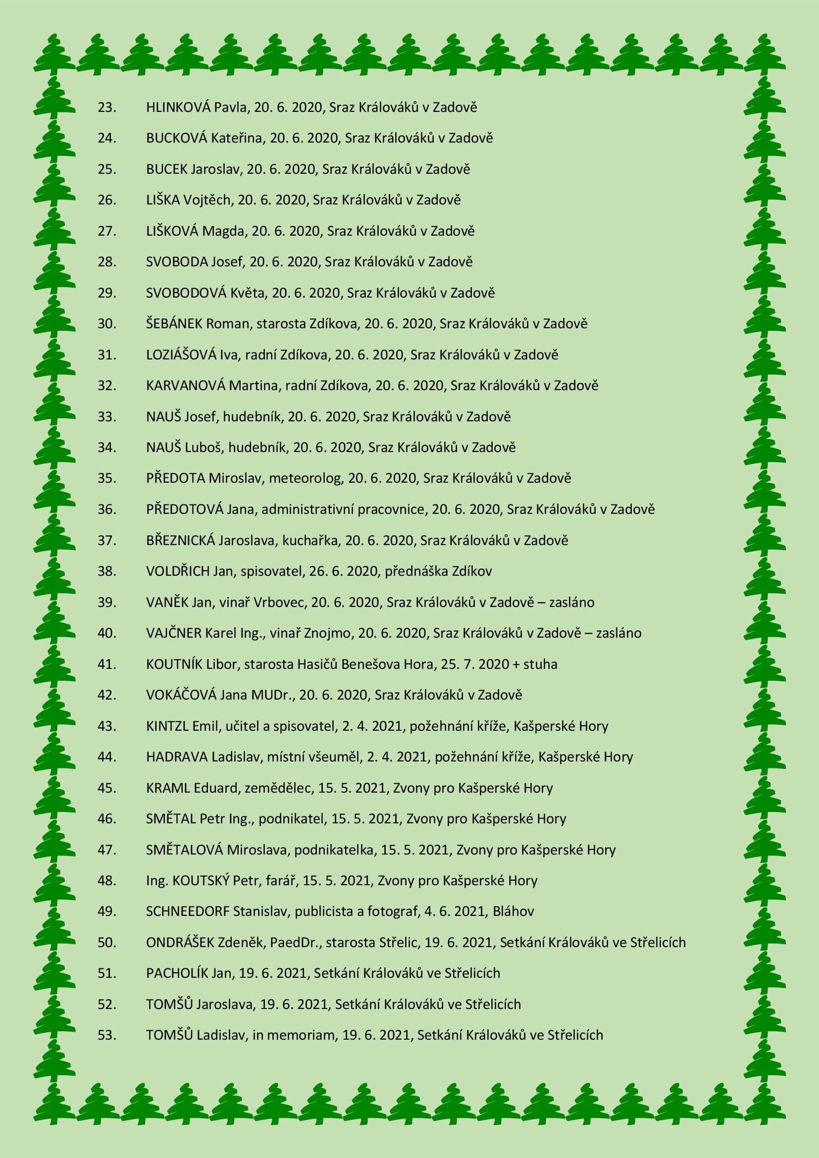 Spolek Horních Králováků svým příznivcům a sympatizantům, kteří svými skutky a činností přispívají k náplni činnosti spolu, věnují svůj čestný odznak. Níže je uveden seznam držitelů čestných odznaků spolku: