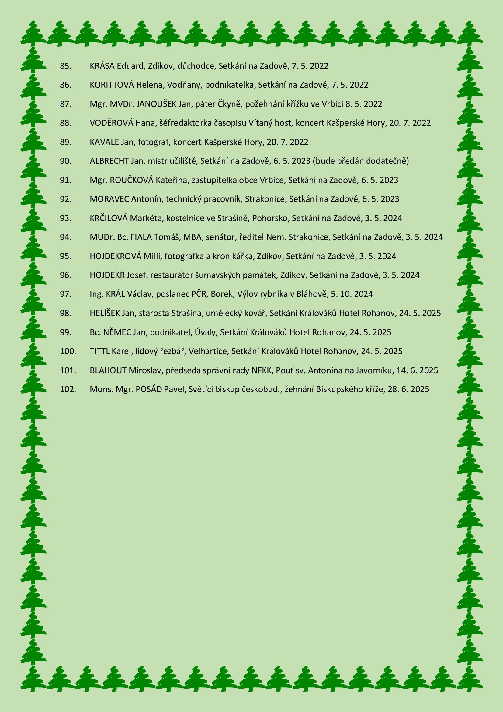 Na této stránce zveřejňujeme medailonky osobností, které se zvlášť zasloužily o naplňování myšlenky a poslání našeho spolku, tedy zejména o ochranu a obnovu historických památek, krajiny, přírody a kulturního dědictví předků.