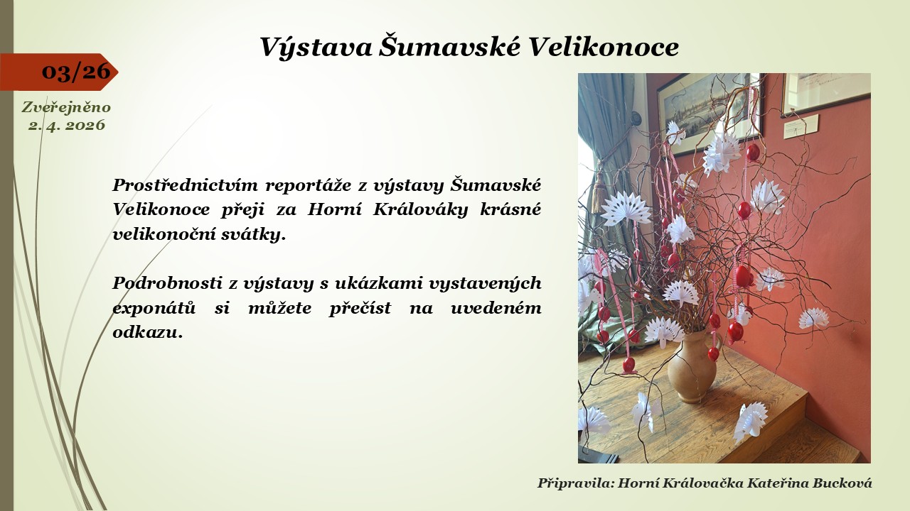 Srdečně zdravím a v příloze posílám pozvánku na výstavu ŠUMAVSKÉ