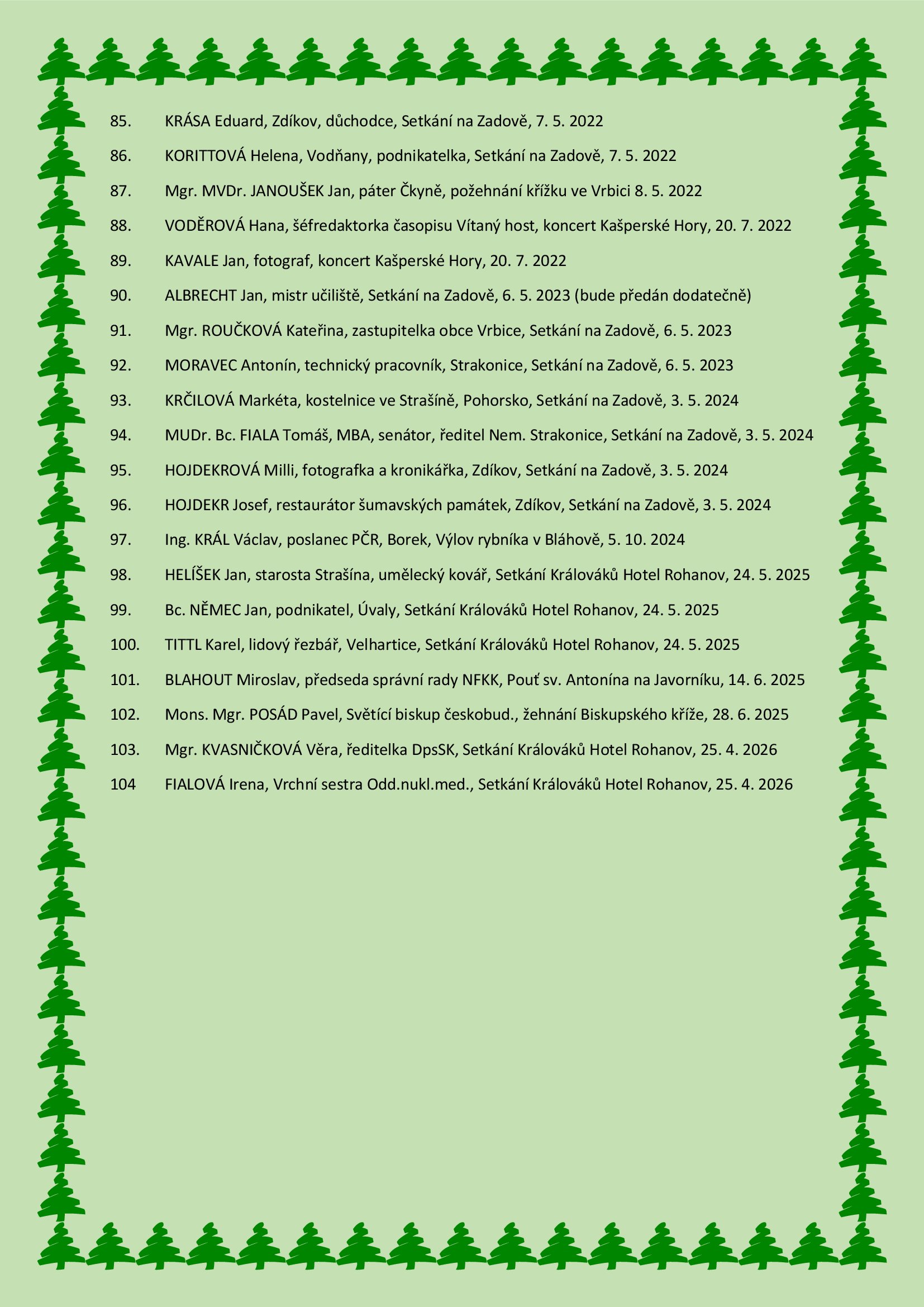 Na této stránce zveřejňujeme medailonky osobností, které se zvlášť zasloužily o naplňování myšlenky a poslání našeho spolku, tedy zejména o ochranu a obnovu historických památek, krajiny, přírody a kulturního dědictví předků.