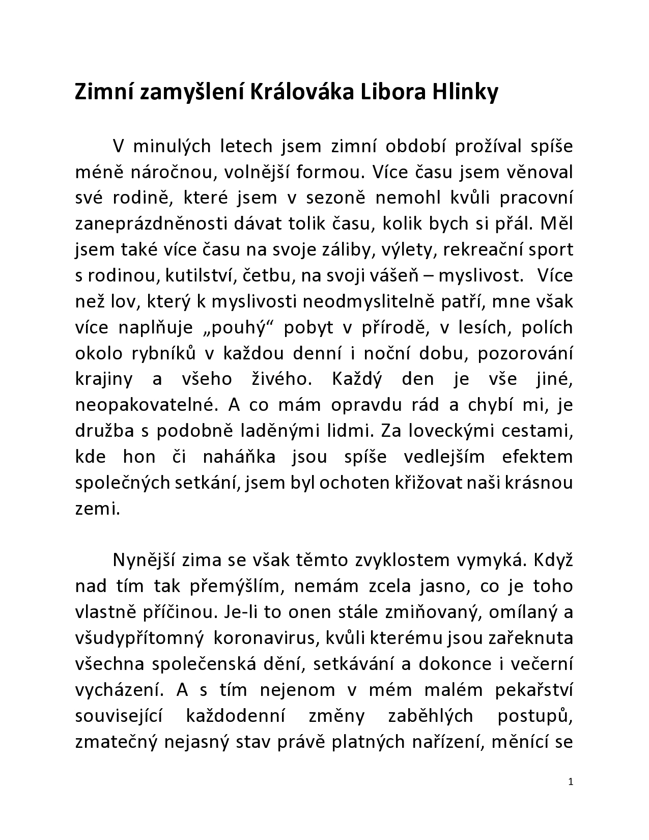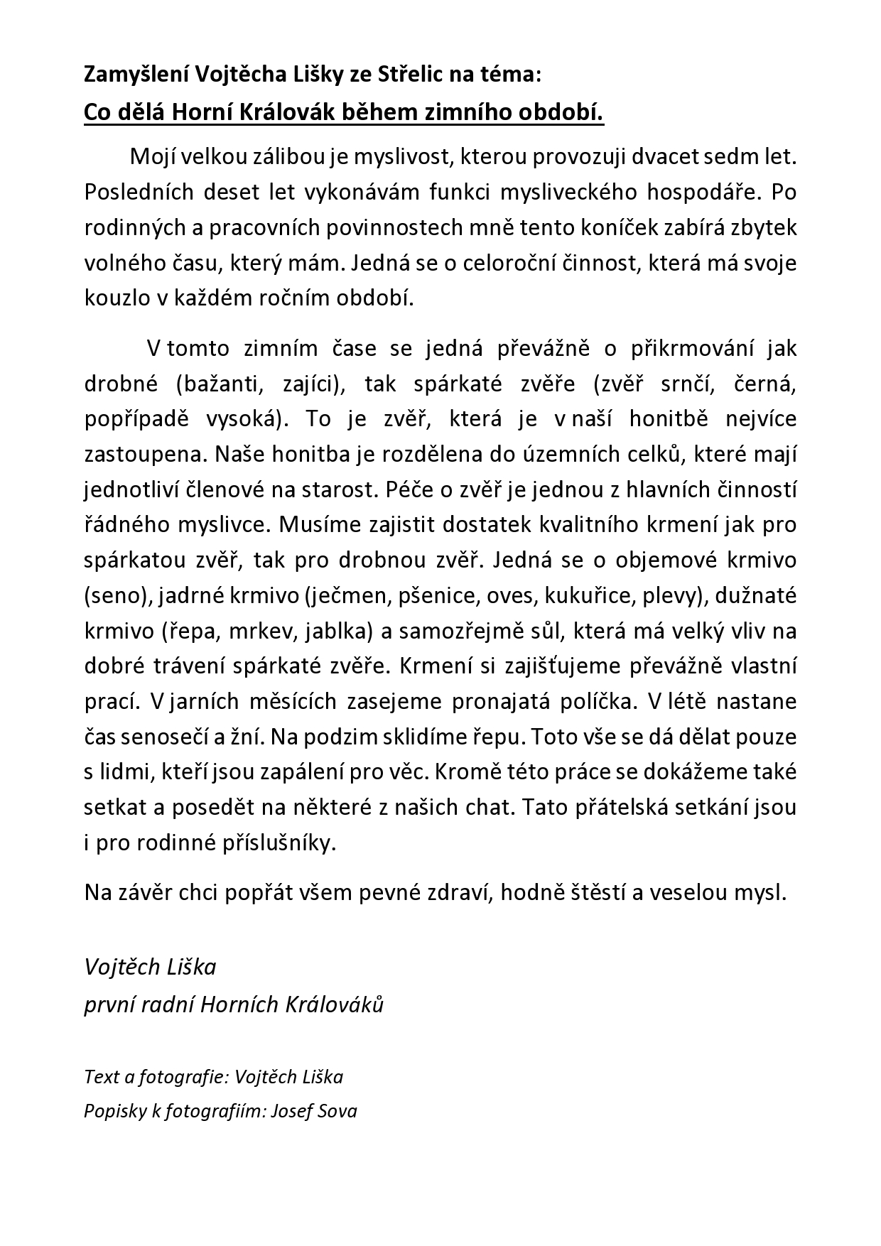 Zimní zamyšlení Králováka Libora Hlinky z Řepic u Strakonic