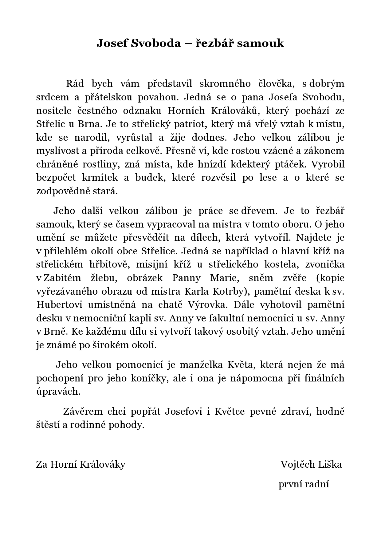 Úvodní stránkaJosef Svoboda Josef Svoboda Pan Josef Svoboda ze Střelic Kříž na střelickém hřbitově U zvoničky v Zabitém žlebu Zvonička v Zabitém žlebu Obrázek Panny Marie