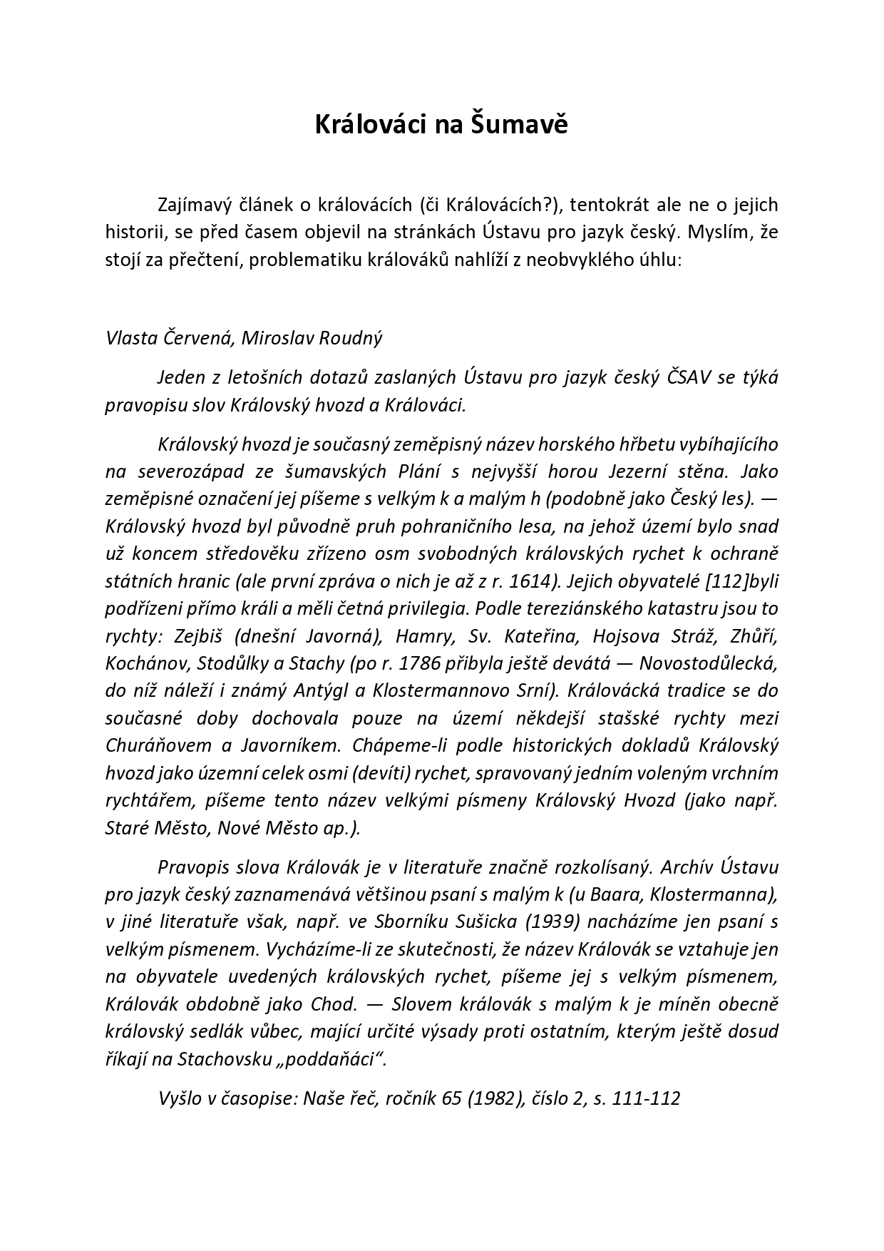 Králováci na Šumavě