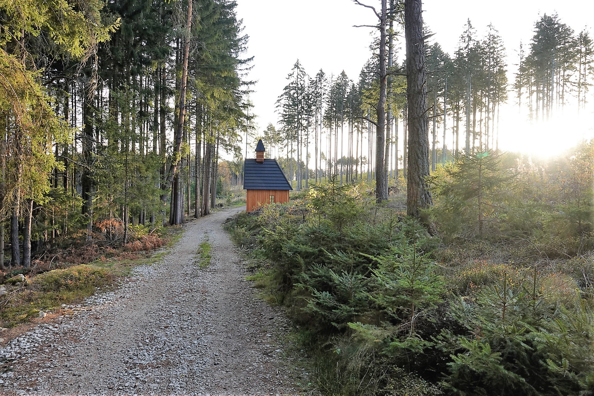 obr. 4 a 5 – Lesní cesta ke kapli přivede řadu poutníků, nebo jen náhodných turistů