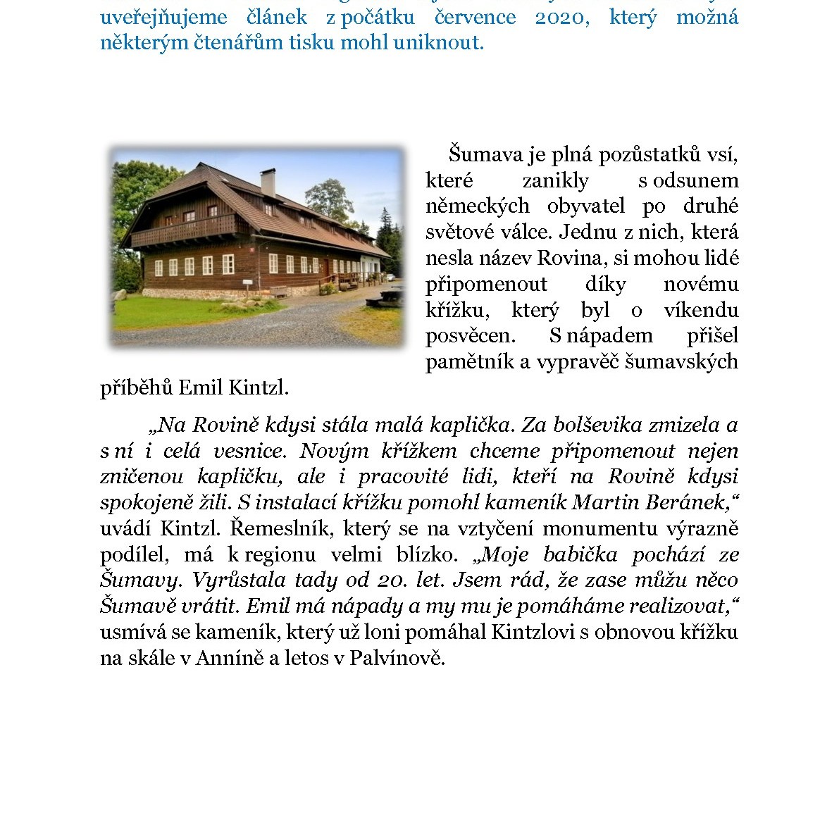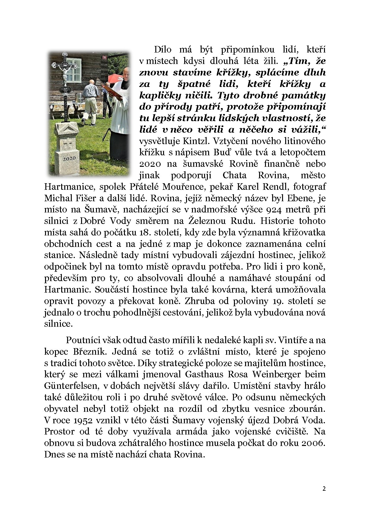 Úvodní stránkaNový křížek na Rovině z iniciativy E. Kintzla Nový křížek na Rovině z iniciativy E. Kintzla