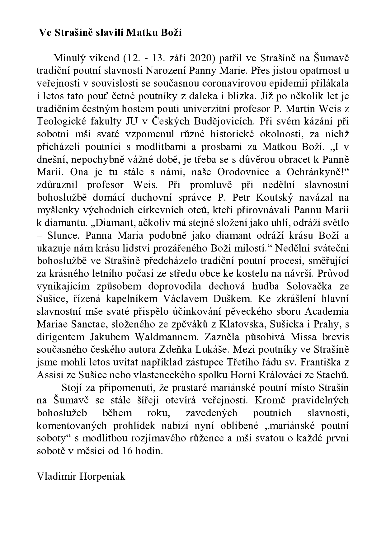 Pouť Strašín 12.-13.9.20