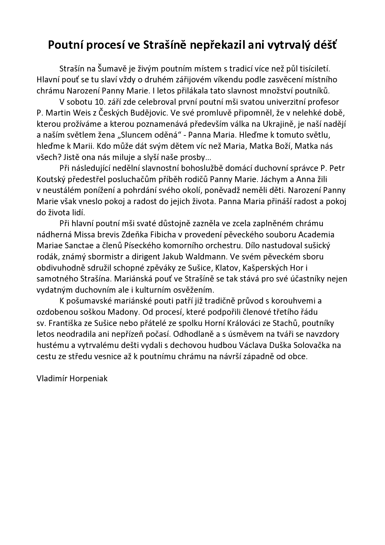 Poutní procesí ve Strašíně