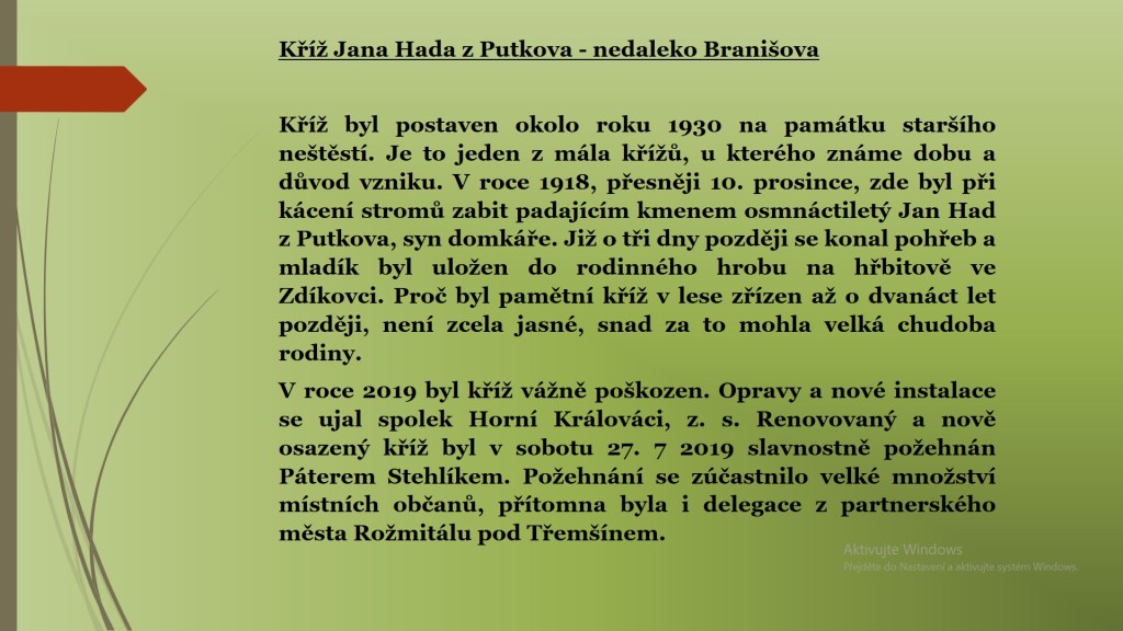 Úvodní stránkaProjektyKříž Jana Hada z Putkova Kříž Jana Hada z Putkova Původní vzhled kříže Jana Hada Kříž Jana Hada v renovaci – po opískování Práce na opravě kříže pokročily Přípravy na požehnání kříže Požehnání renovovaného kříže Jana Hada