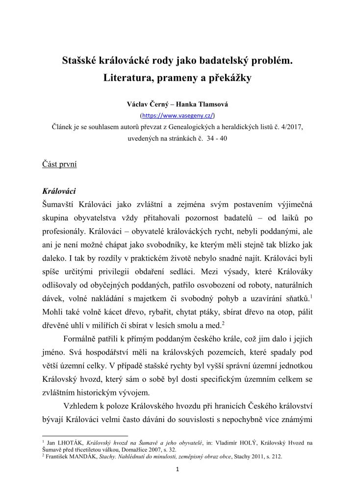 – Stašské královácké rody (1)