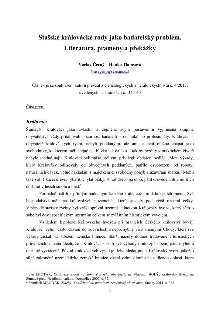 Úvodní stránkaStašské královácké rody (1) Stašské královácké rody (1) Stašské královácké rody jako badatelský problém (1) – Králováci