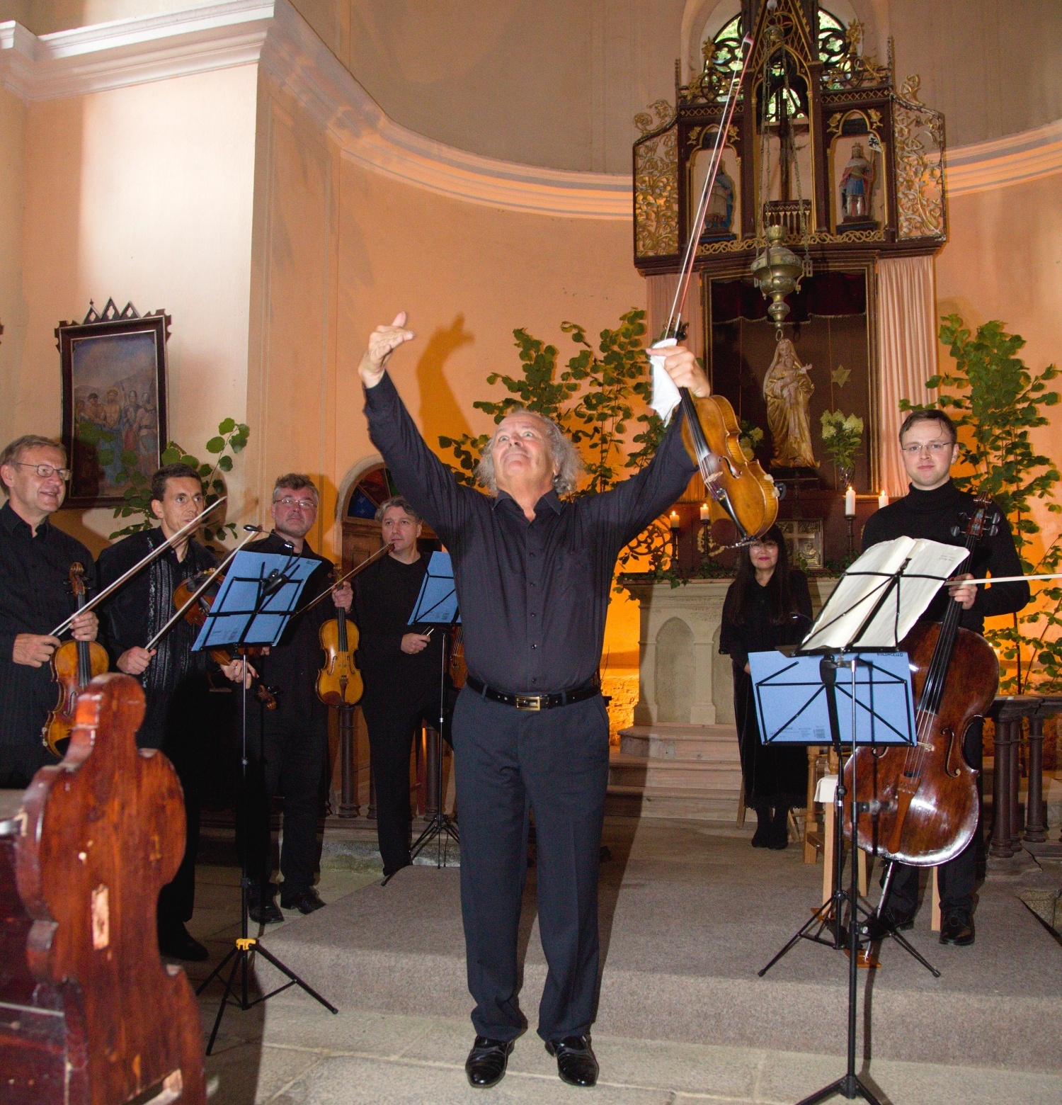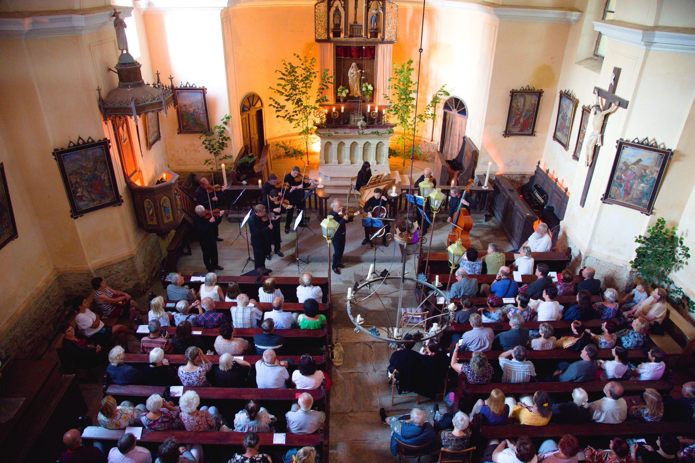 Posluchači v zaplněných lavicích pozorně naslouchají prvním tónům díla Čtvero ročních období skladatele Antonia Vivaldiho