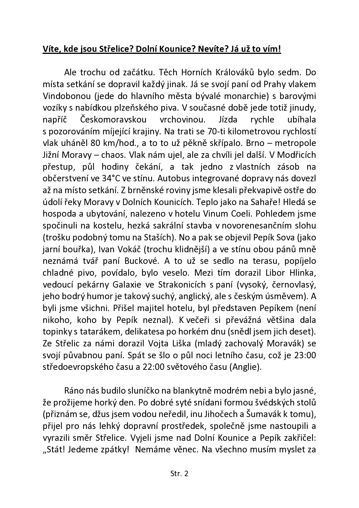 Výjezdní zasedání Králováků ve Střelicích