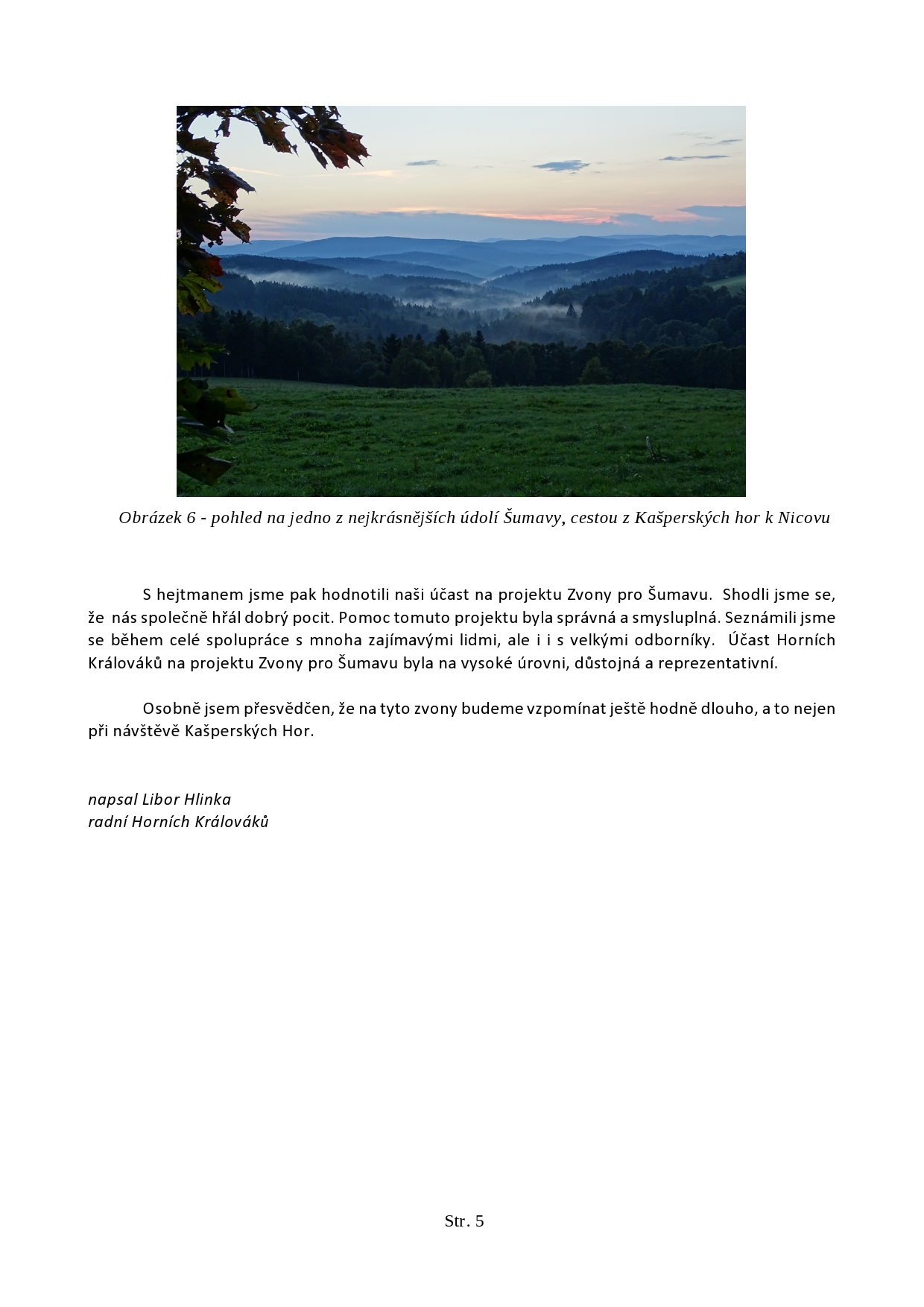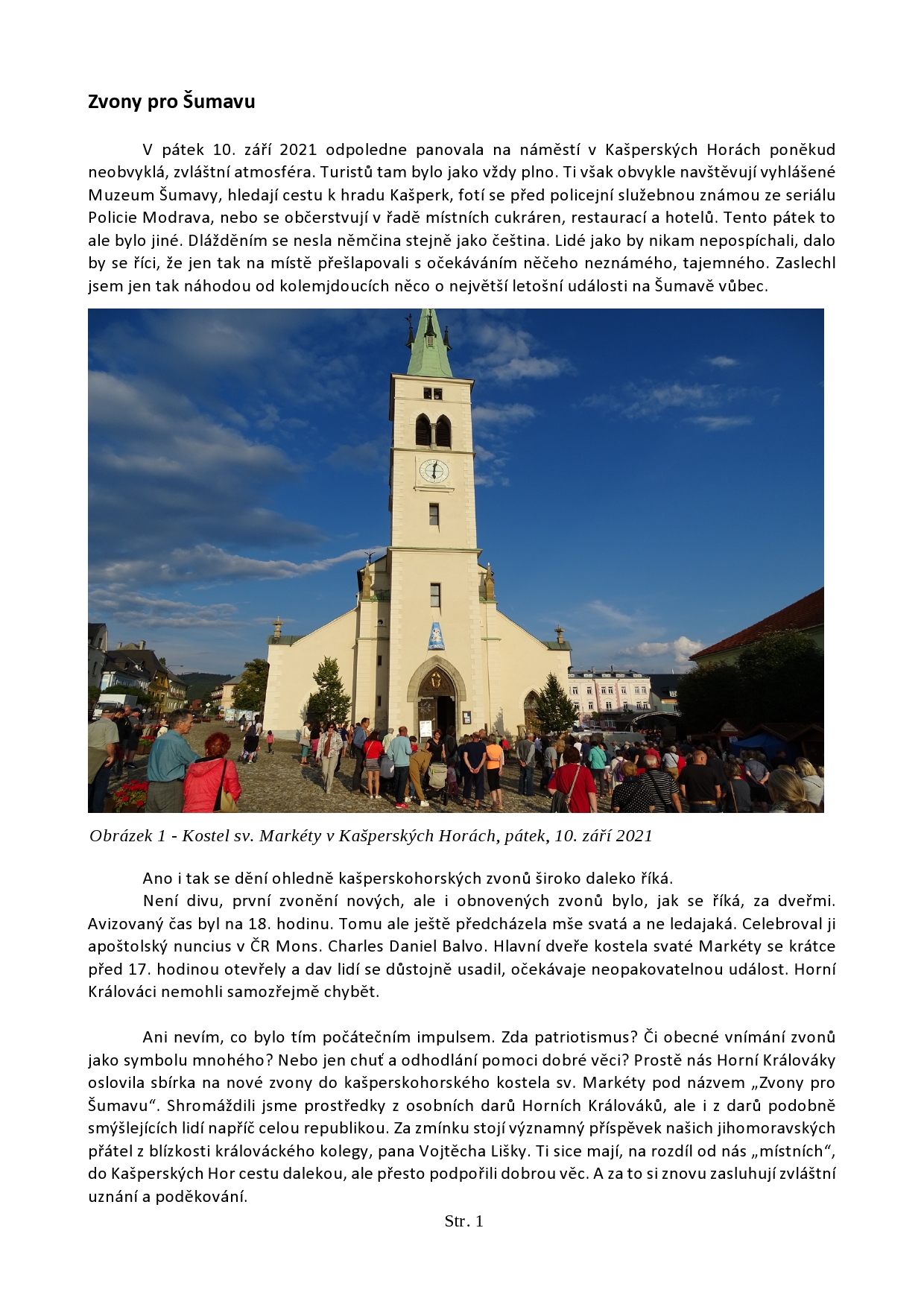 Úvodní stránkaZvony pro Šumavu – z pera L. Hlinky Zvony pro Šumavu – z pera L. Hlinky Níže je amatérské video z archivu Horních Králováků – první zvonění a modlitba Anděl Páně: